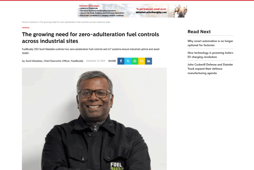 Sunil Maddala recently discussed how FuelBuddy is rethinking fuel access for large-scale operations in an interview with EPC World. The discussion presents fuel as an operational dependency that directly affects productivity, compliance, and financial discipline across infrastructure-heavy sectors rather than as a commodity transaction. Sunil draws attention to the hidden inefficiencies that decentralized refueling produces, such as time loss, in...